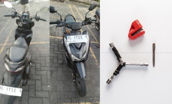 Dari lokasi penemuan motor, petugas tidak hanya mengamankan kendaraan milik korban. Polisi juga menyita sejumlah barang bukti yang ditinggalkan oleh pelaku saat kabur, di antaranya seperangkat kunci T yang digunakan untuk merusak kontak motor, sebuah jaket hitam, serta dua lembar sarung berwarna hitam.